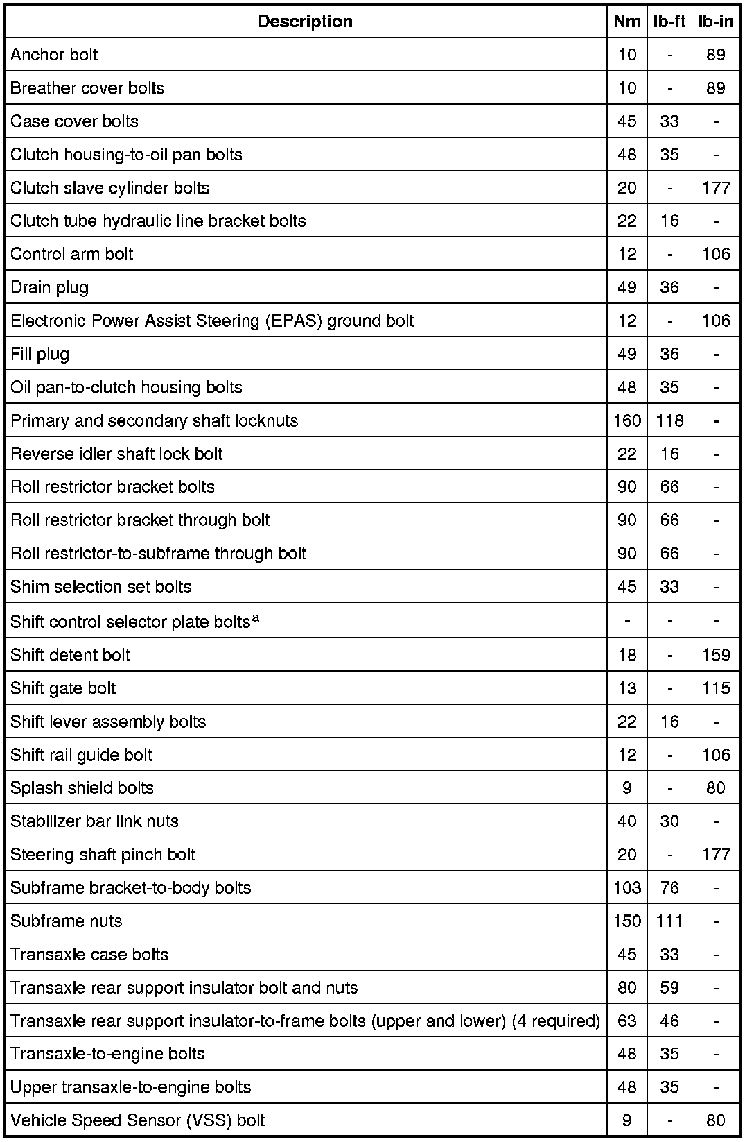 Torque Specifications