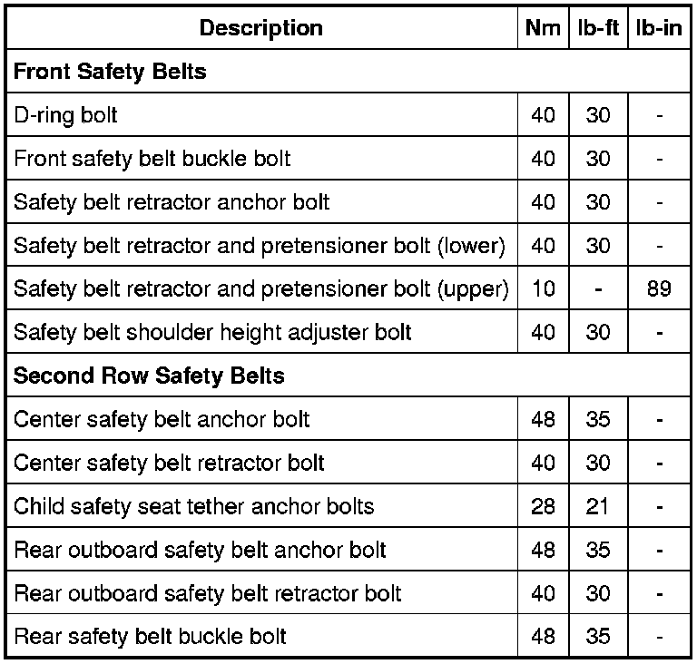 Seat Belt Systems