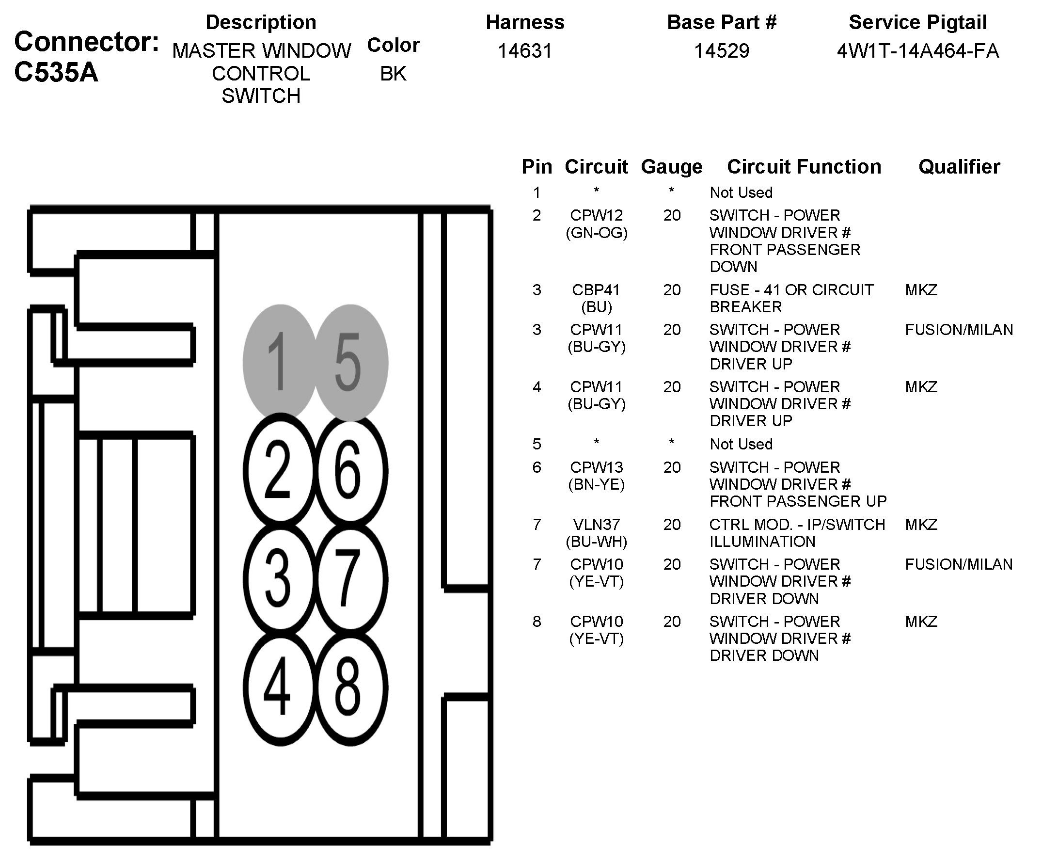 C535A Master Window Control Switch