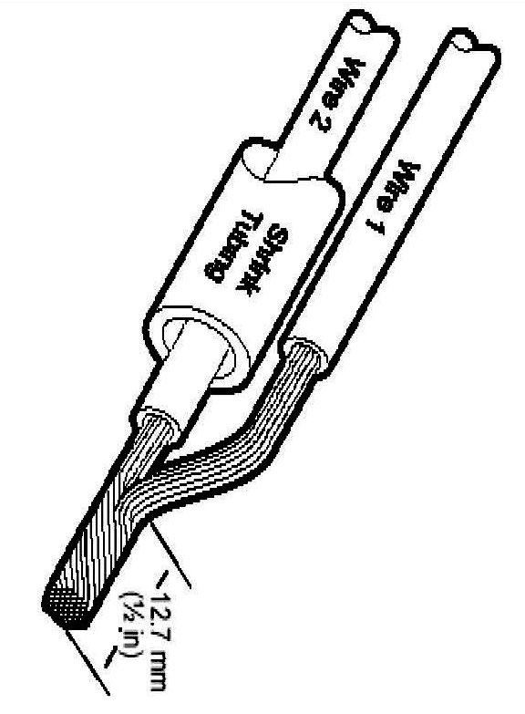 NOTE: Overlap tubing on both wires.