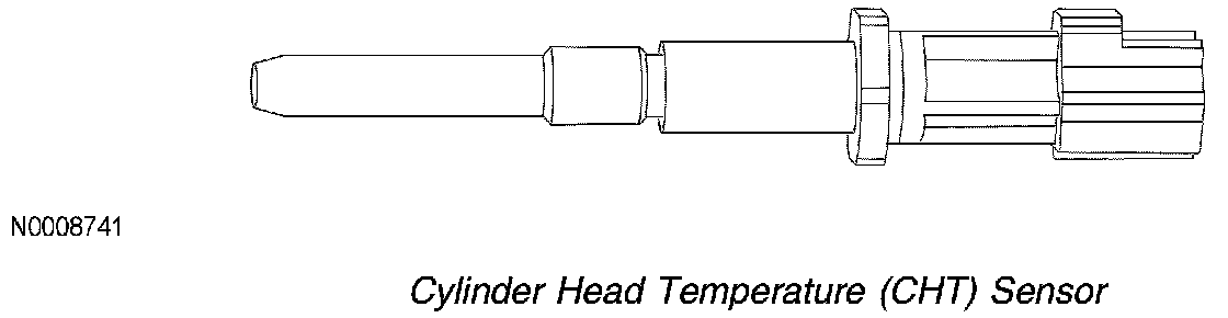 The CHT sensor is installed in the aluminum cylinder head and measures the metal temperature. The CHT sensor provides complete engine temperature information and can be used to infer coolant temperature. If the CHT sensor conveys an overheating condition to the PCM, the PCM then initiates a fail-safe cooling strategy based on information from the CHT sensor. A cooling system failure such as low coolant or coolant loss could cause an overheating condition. As a result, damage to major engine components could occur. Using both the CHT sensor and fail-safe cooling strategy, the PCM prevents damage by allowing air cooling of the engine and limp home capability. For additional information, refer to Powertrain Control Software Fail-Safe Cooling Strategy.