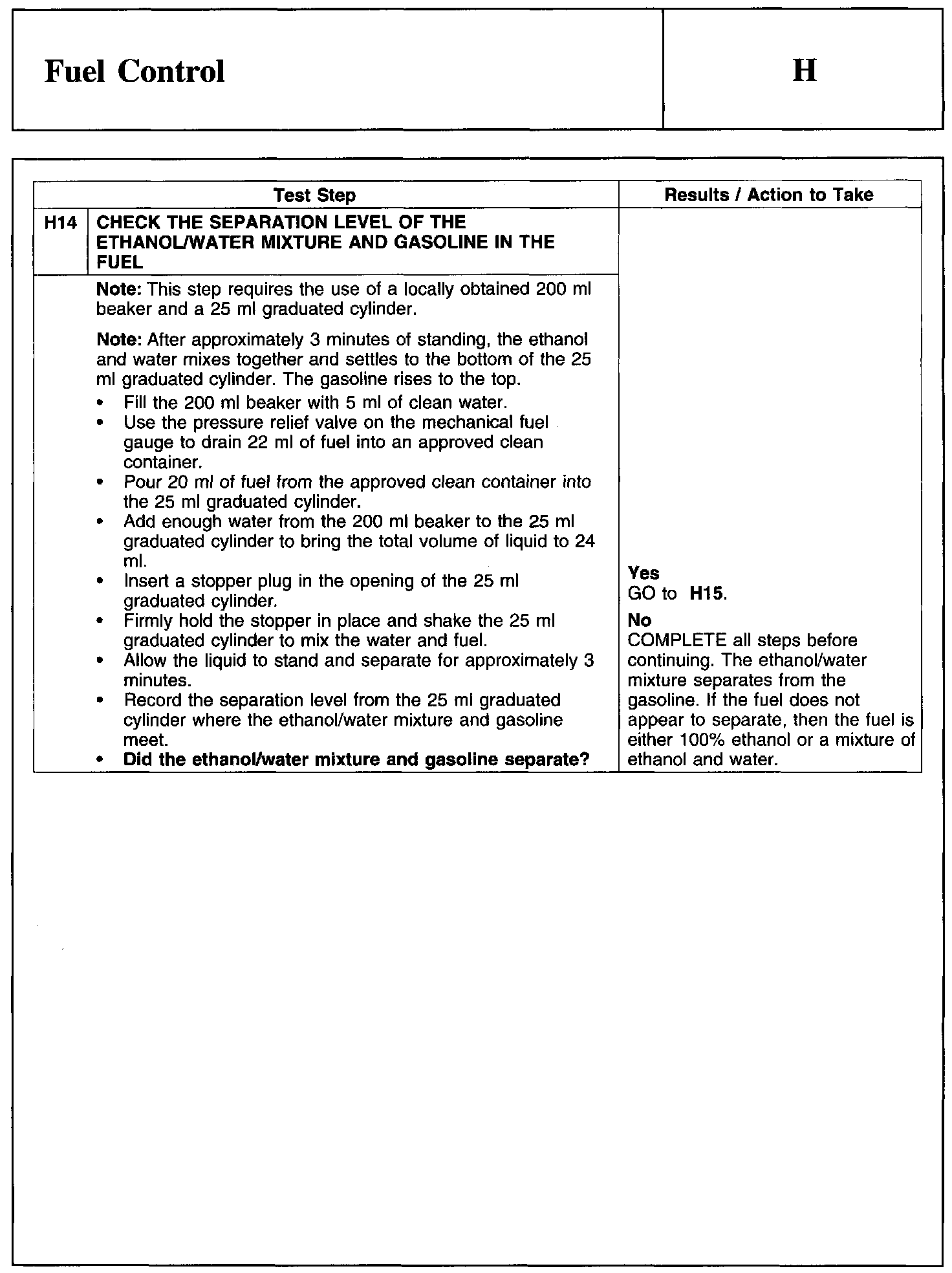 Test H: Fuel Control