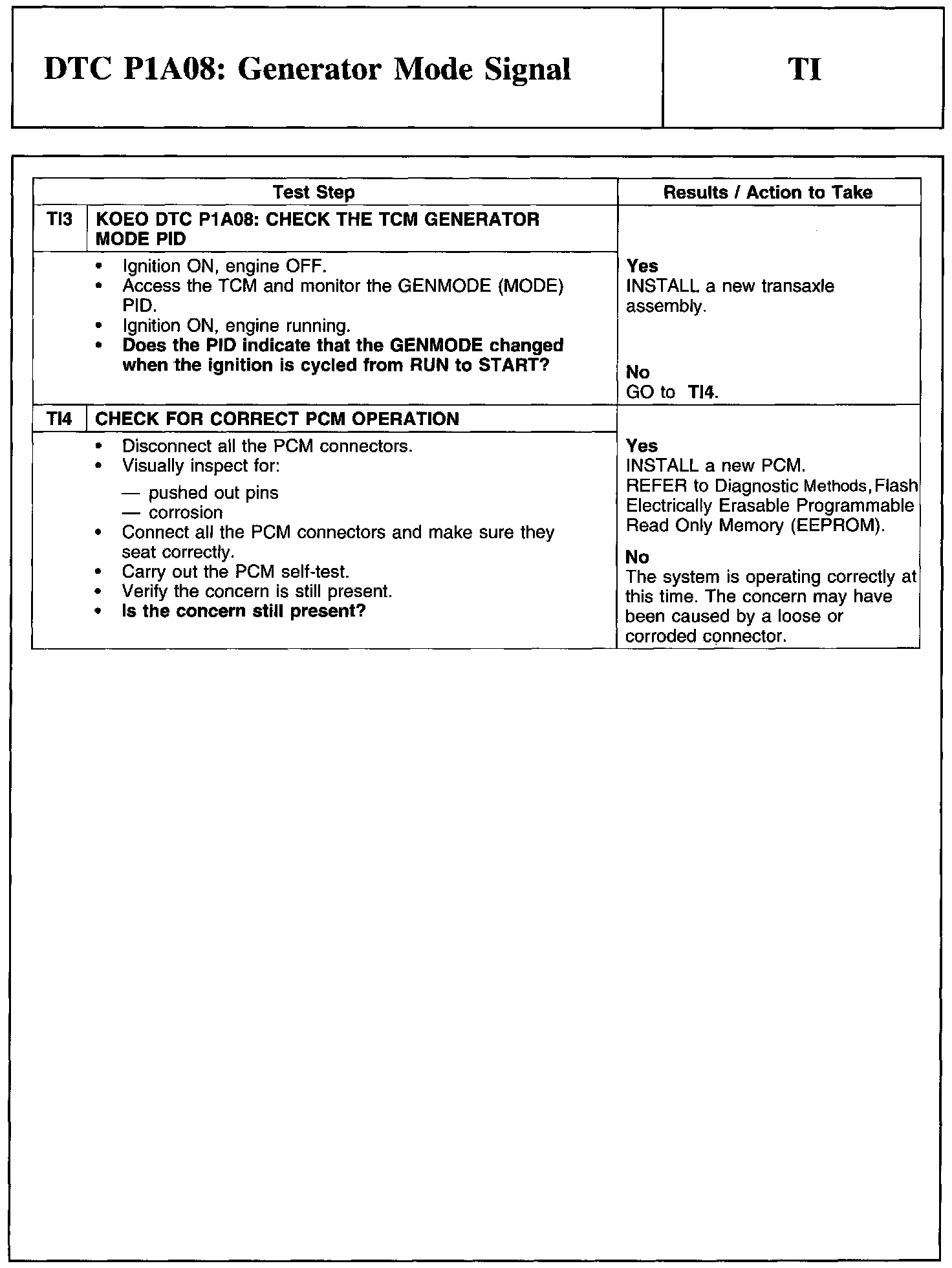 PINPOINT TEST TI: DTC P1A08: GENERATOR MODE SIGNAL
