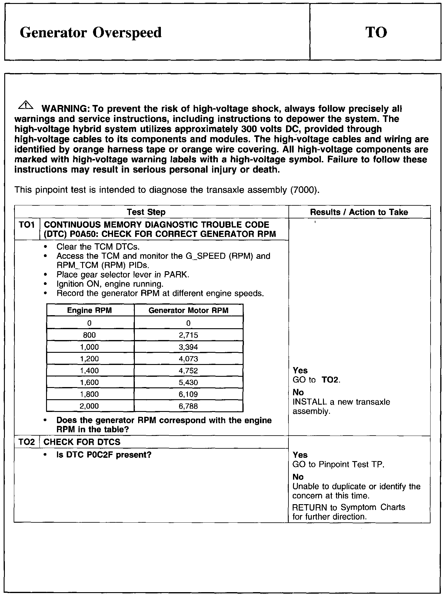 Test TO: Generator Overspeed