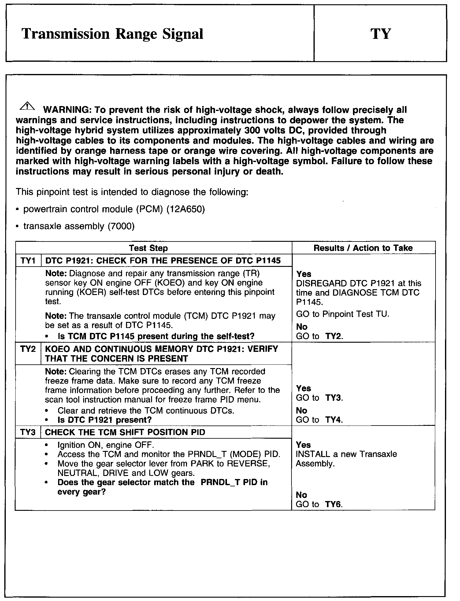 PINPOINT TEST TY: TRANSMISSION RANGE SIGNAL