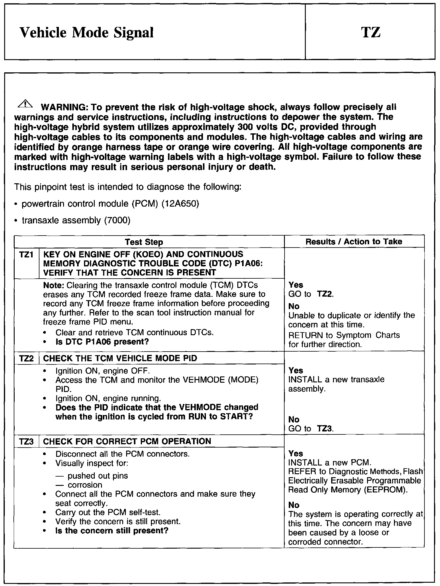 PINPOINT TEST TZ: VEHICLE MODE SIGNAL