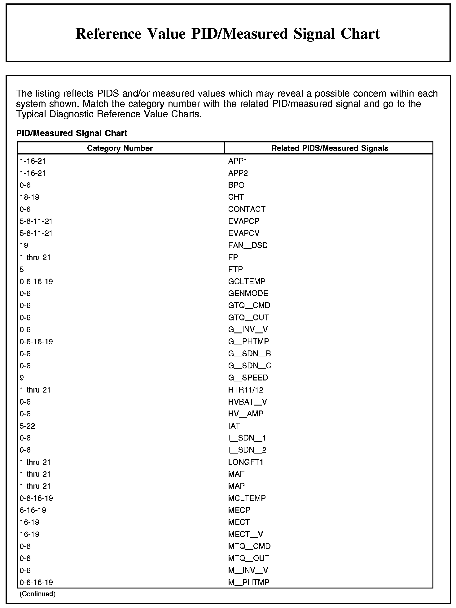 REFERENCE VALUE PID/MEASURED SIGNAL CHART