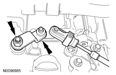 15. Connect the selector lever cable end to the manual control lever with the manual control lever and selector lever in DRIVE. Check selector lever cable adjustment. For additional information, refer to Automatic Transaxle/Transmission External Controls - Aisin AW21/6F35 Adjustments.