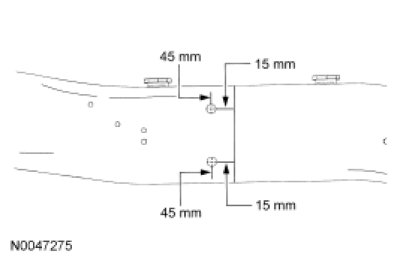 9. NOTE: Observe prescribed welding procedures when carrying out frame rail service kit replacement. For additional information, refer to Welding Precautions - Steel .
