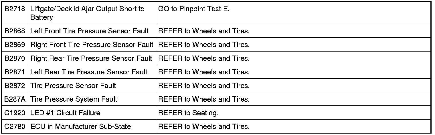 Driver Door Module (DDM) DTC Chart