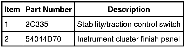 2. Depress the 2 tabs and remove the stability/traction control switch from the instrument panel finish panel.