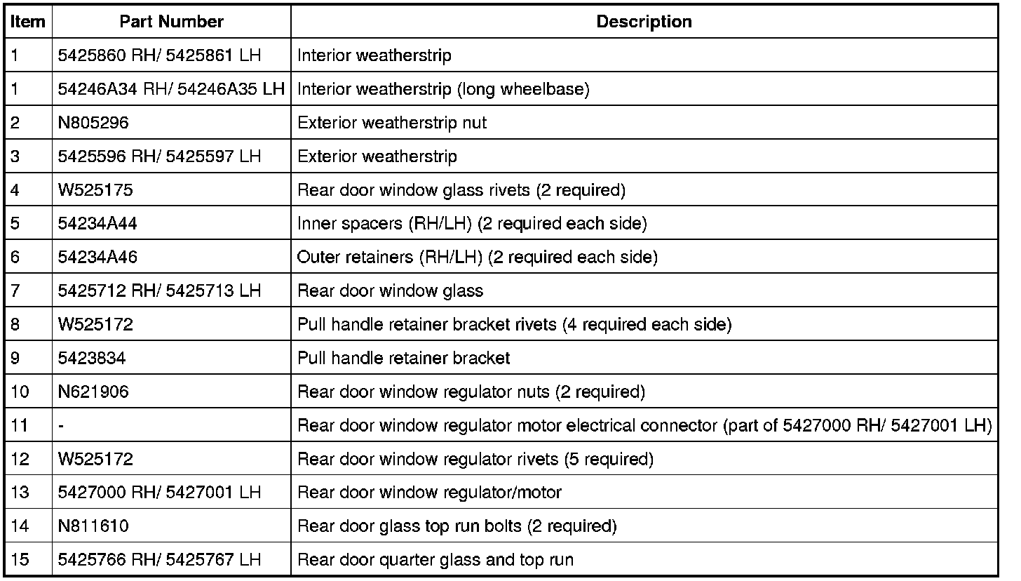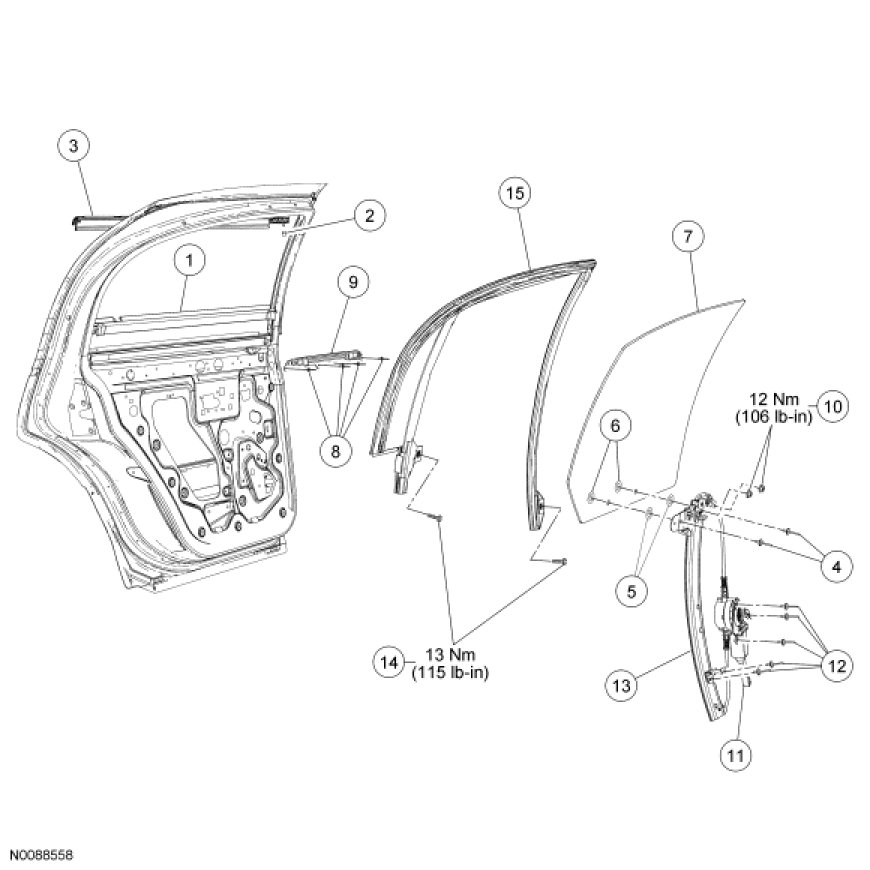 Glass, Frames and Mechanisms - Exploded View, Rear Door