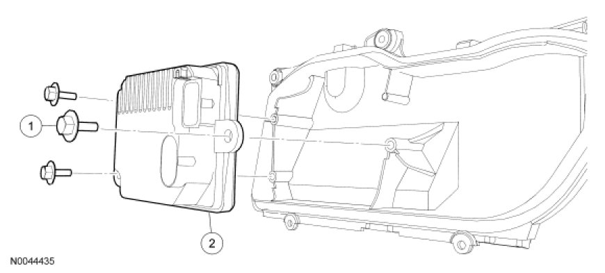 1. Remove the headlamp assembly. For additional information, refer to Headlamp Assembly Service and Repair.