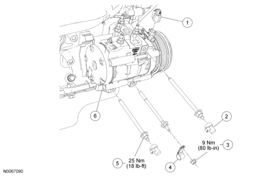 6. NOTE: It is not necessary to remove the A/C compressor stud bolts.