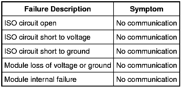 The following fault chart describes the specific ISO 9141 network failures and their resulting symptom: