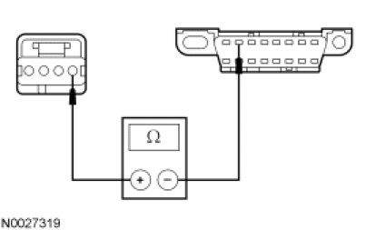 - Measure the resistance between the RATC module C3160a-1, circuit 914 (TN/OG), harness side and the DLC C251-2, circuit 914 (TN/OG), harness side.