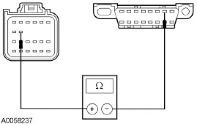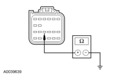 - Measure the resistance between the RCM C310a-16, circuit 676 (PK/OG), harness side and ground.