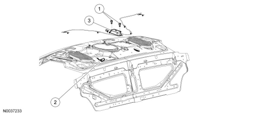 1. Remove the parcel shelf. For additional information, refer to Interior Trim and Ornamentation Service and Repair.