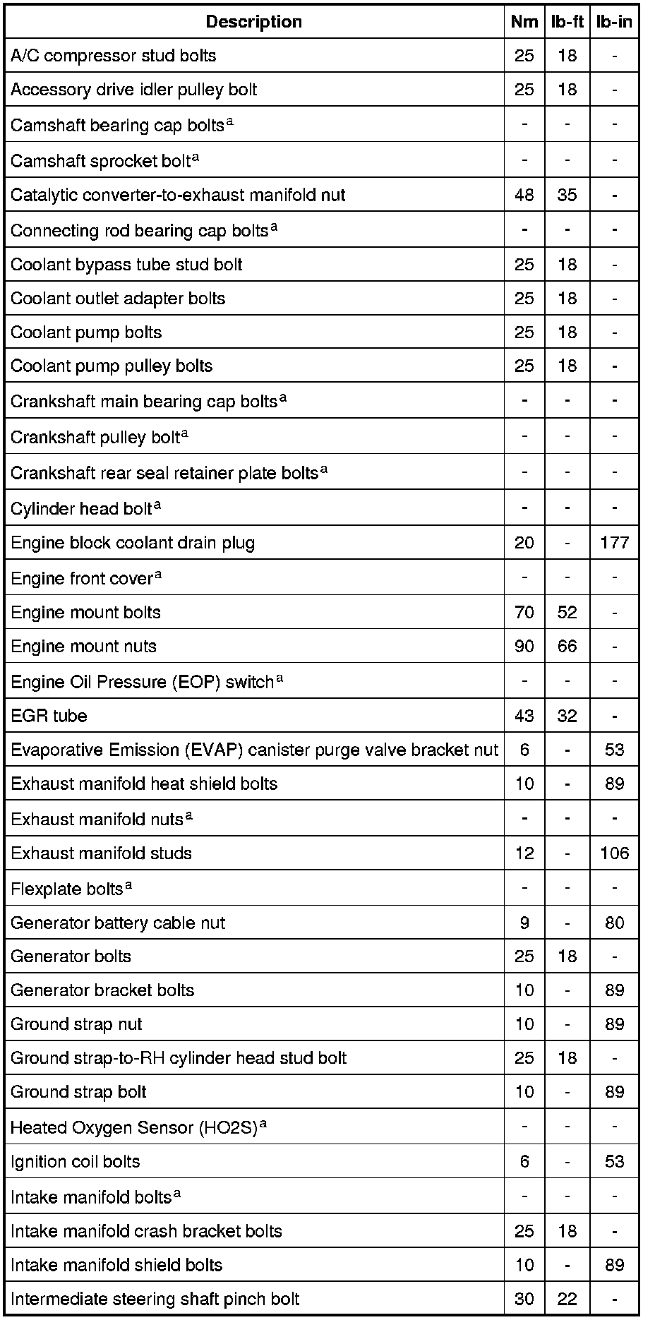 Torque Specifications