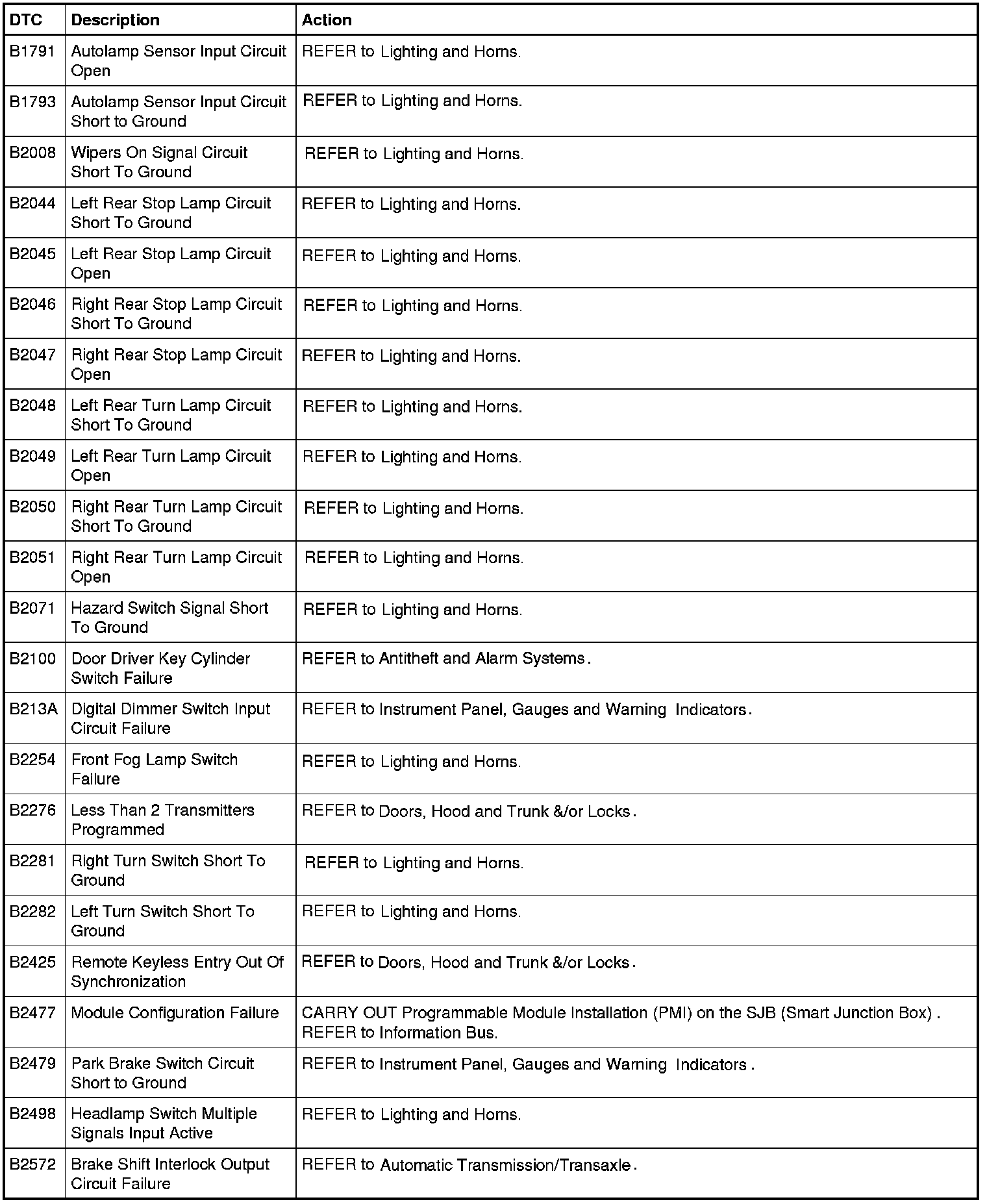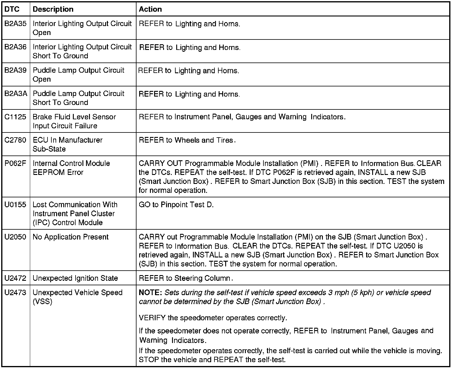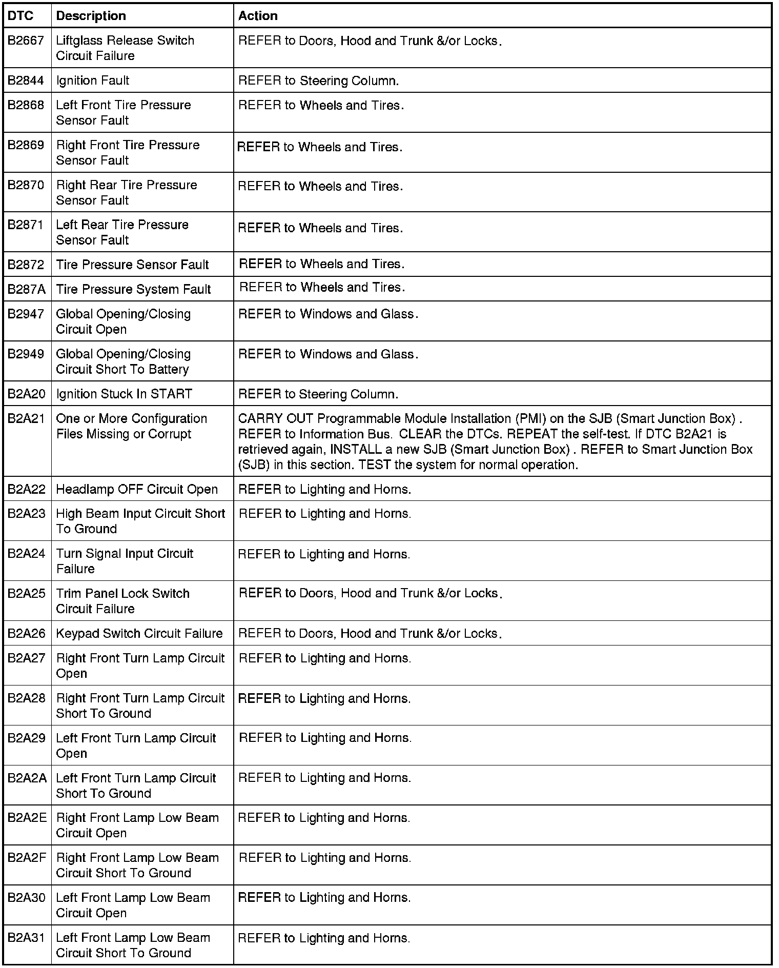 Smart Junction Box (SJB) DTC Chart