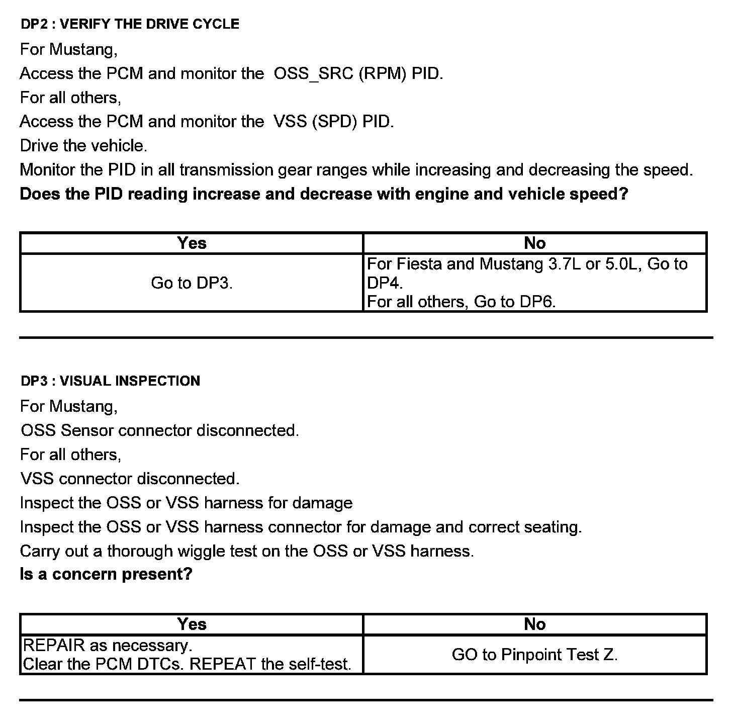Test DP: Output Shaft Speed (OSS) Sensor/Vehicle Speed Sensor ( VSS)