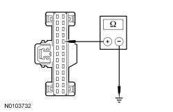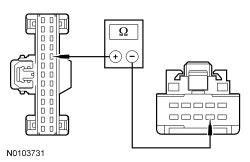 - Measure the resistance between IC (Instrument Cluster) C220-18, circuit CCA15 (YE/GY), harness side and ground.