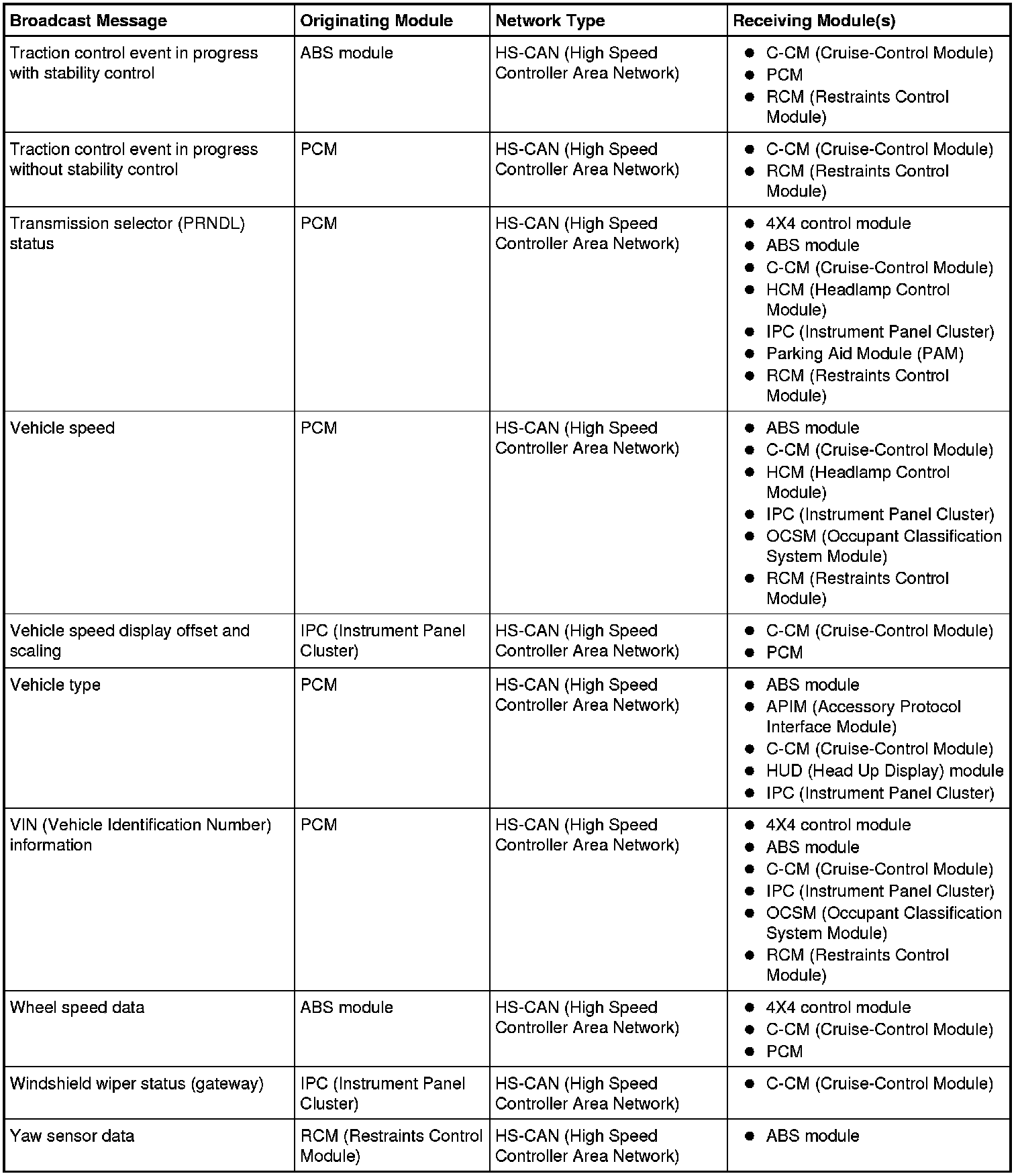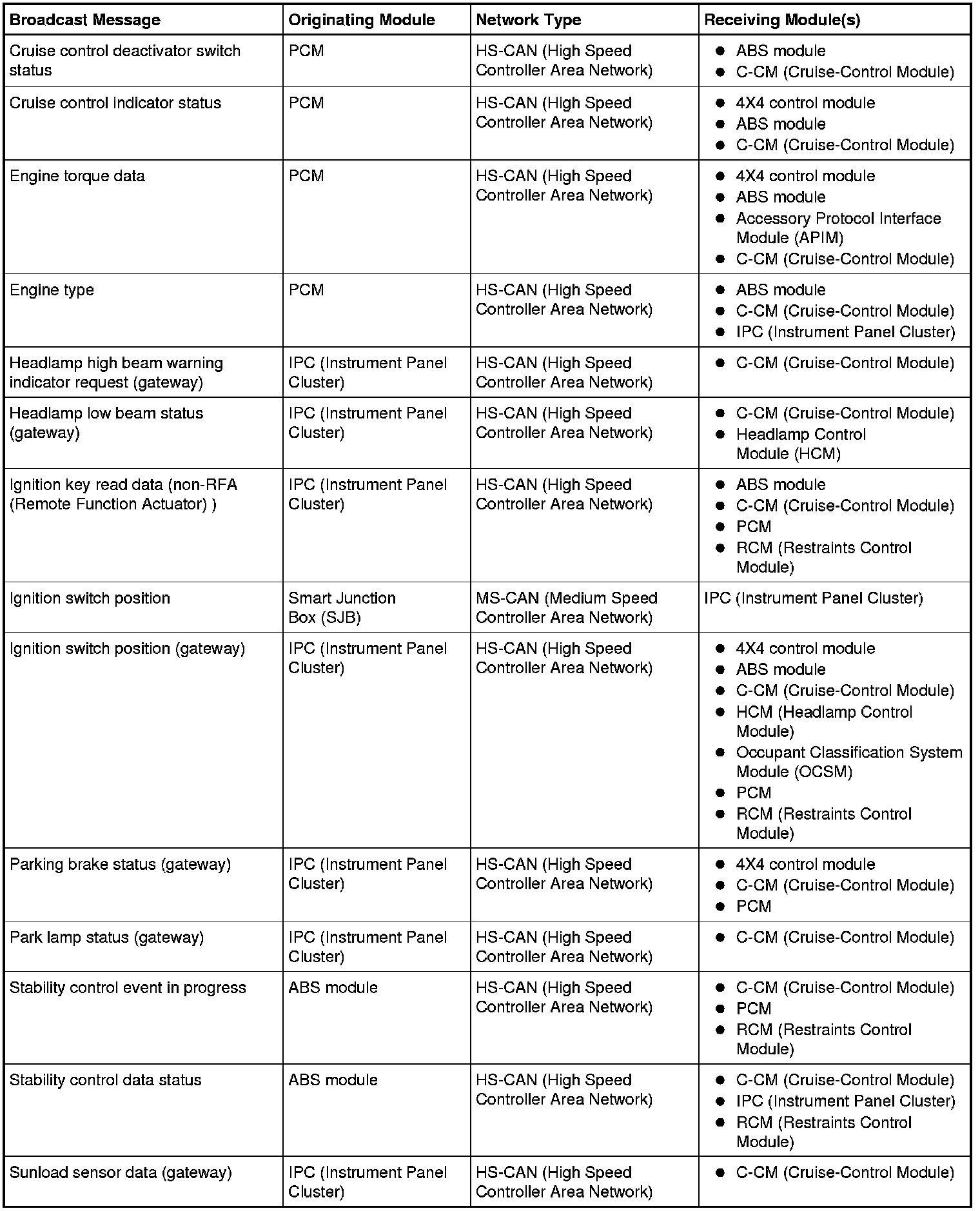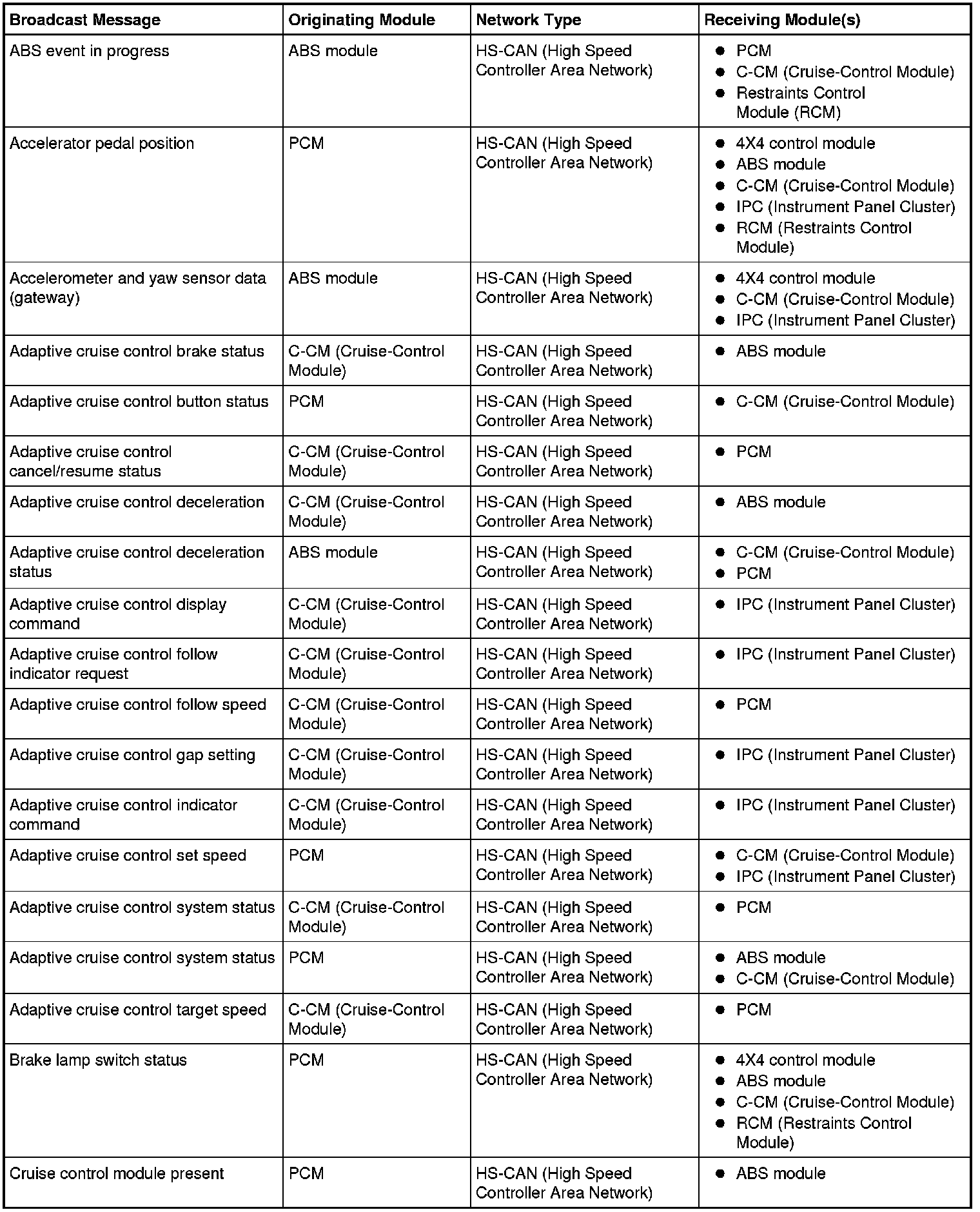 NOTE: While there are numerous messages internal to the adaptive cruise control system module. The following messages are utilized by the adaptive cruise control system in conjunction with outside systems.