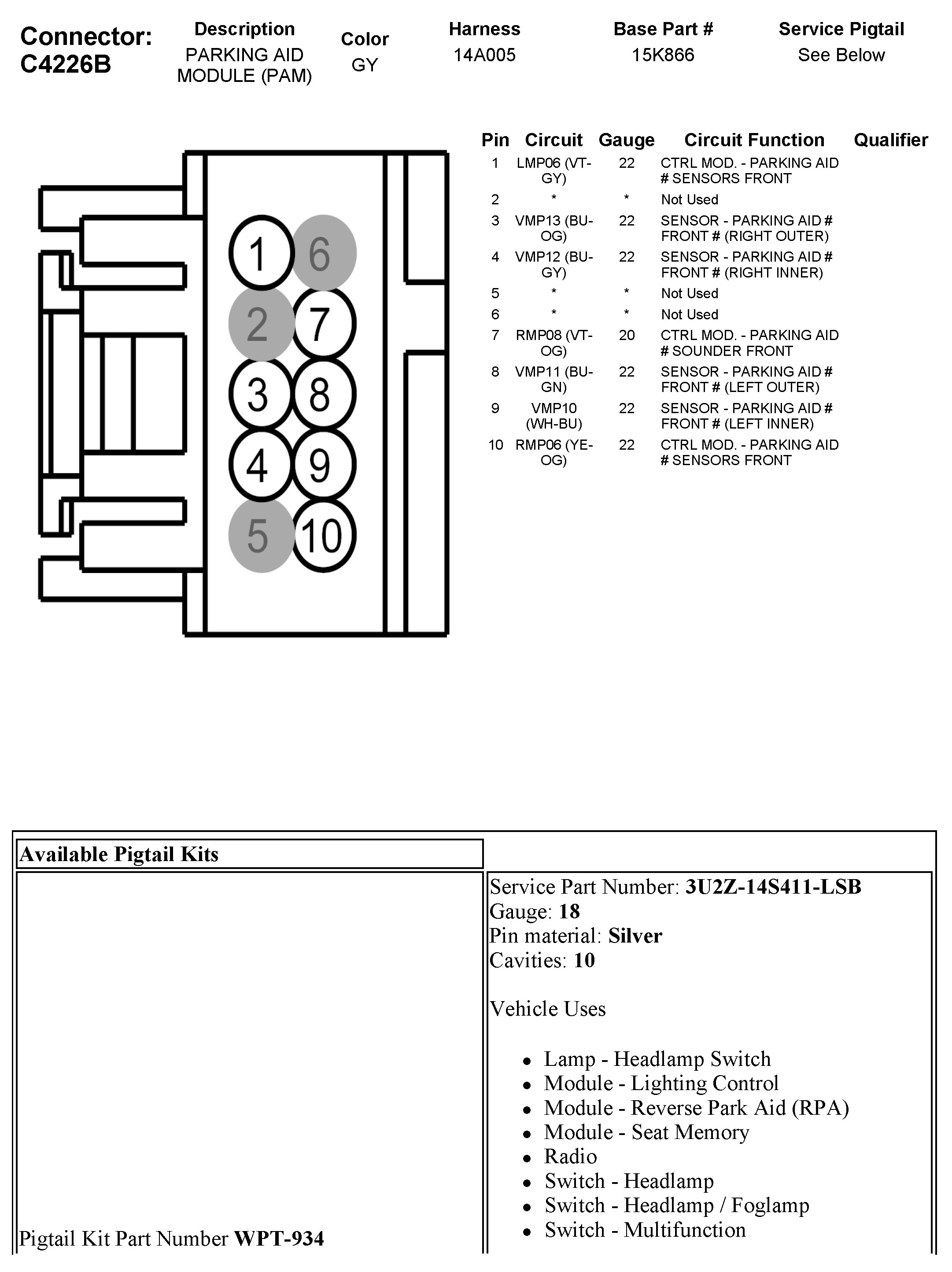 C4226B Parking Aid Module (PAM)