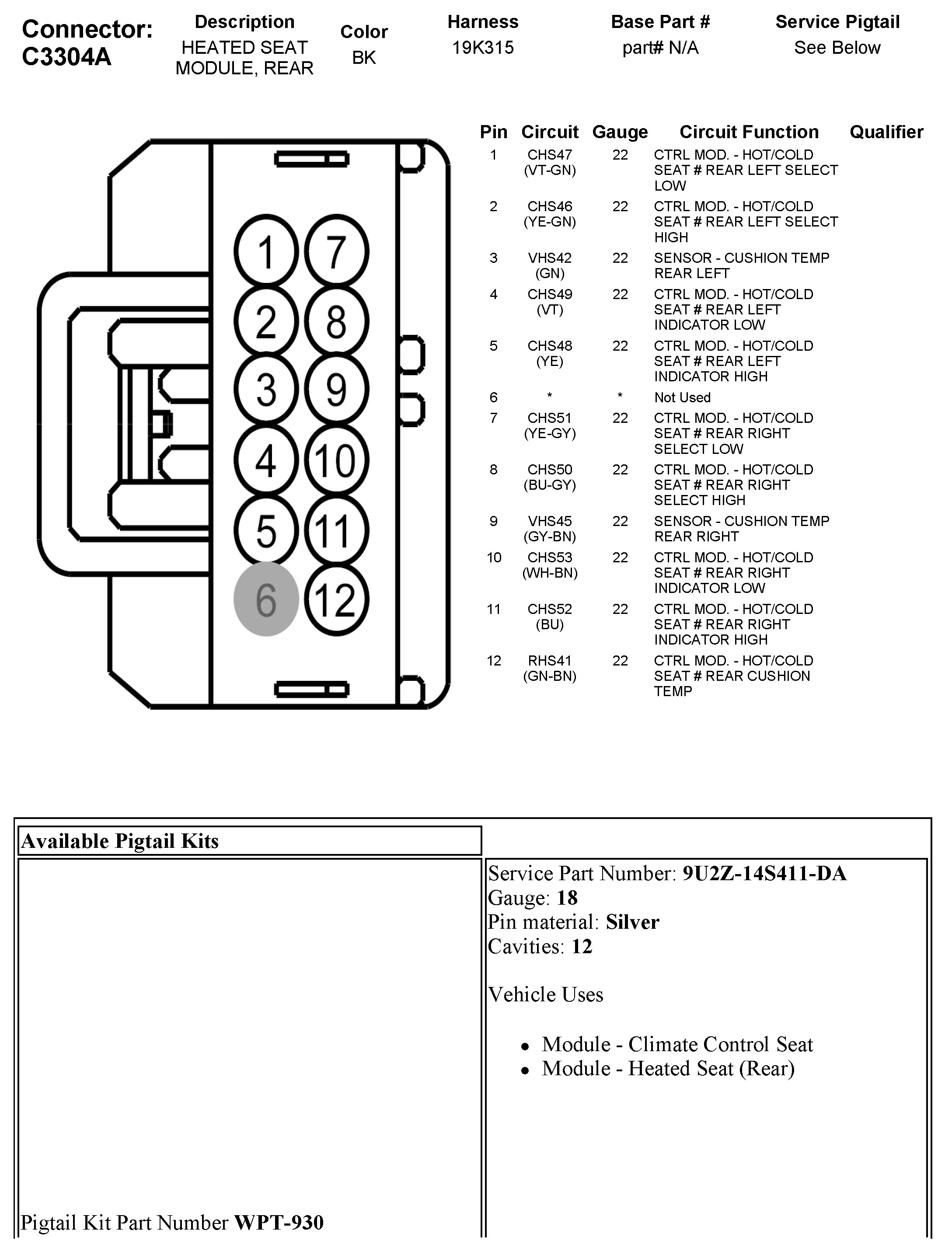 C3304A Heated Seat Module, Rear