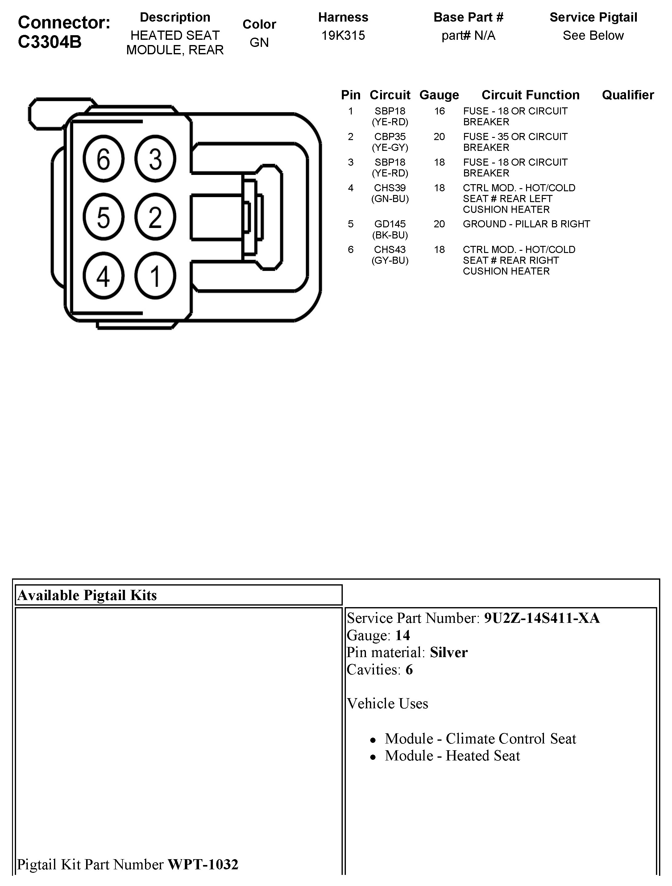 C3304B Heated Seat Module, Rear
