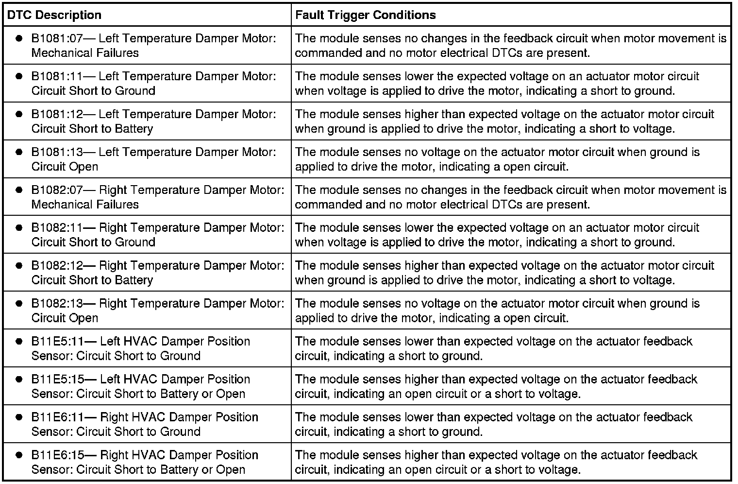 For DTC B1081:07 or B1082:07, INSPECT for binding/damaged linkage or door. REPAIR as necessary. If no condition is found, INSTALL a new door actuator. CONNECT the actuator electrical connector before the HVAC module connector(s).