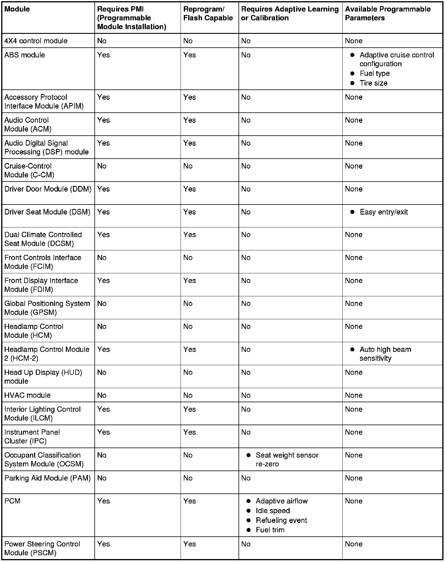 Programmable parameters are customer preference items that may be modified by the dealer via the scan tool or in some cases modified by the customer following a procedure listed in the Owner's Literature. While many configuration options may exist for a module, only a few of these options are programmable parameters.