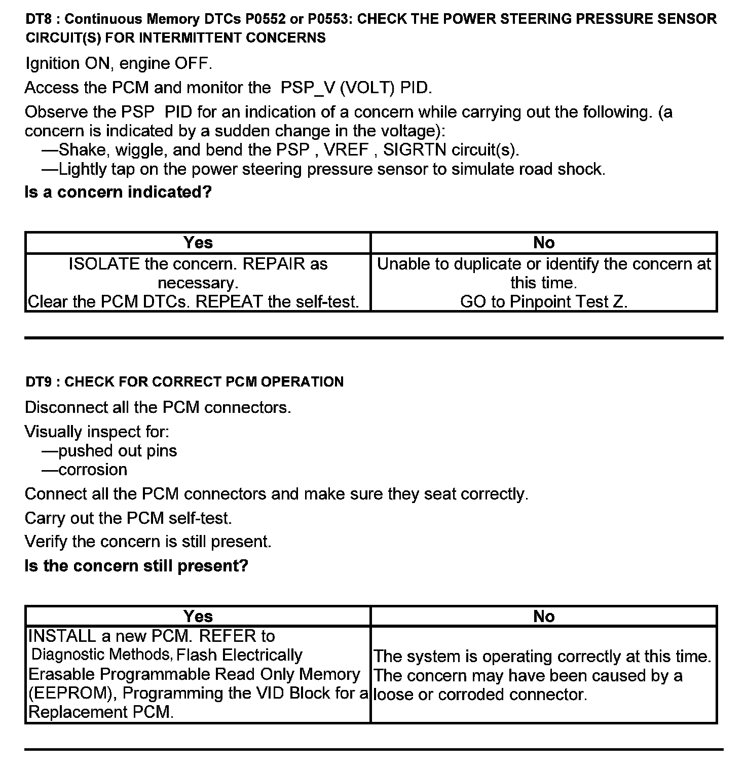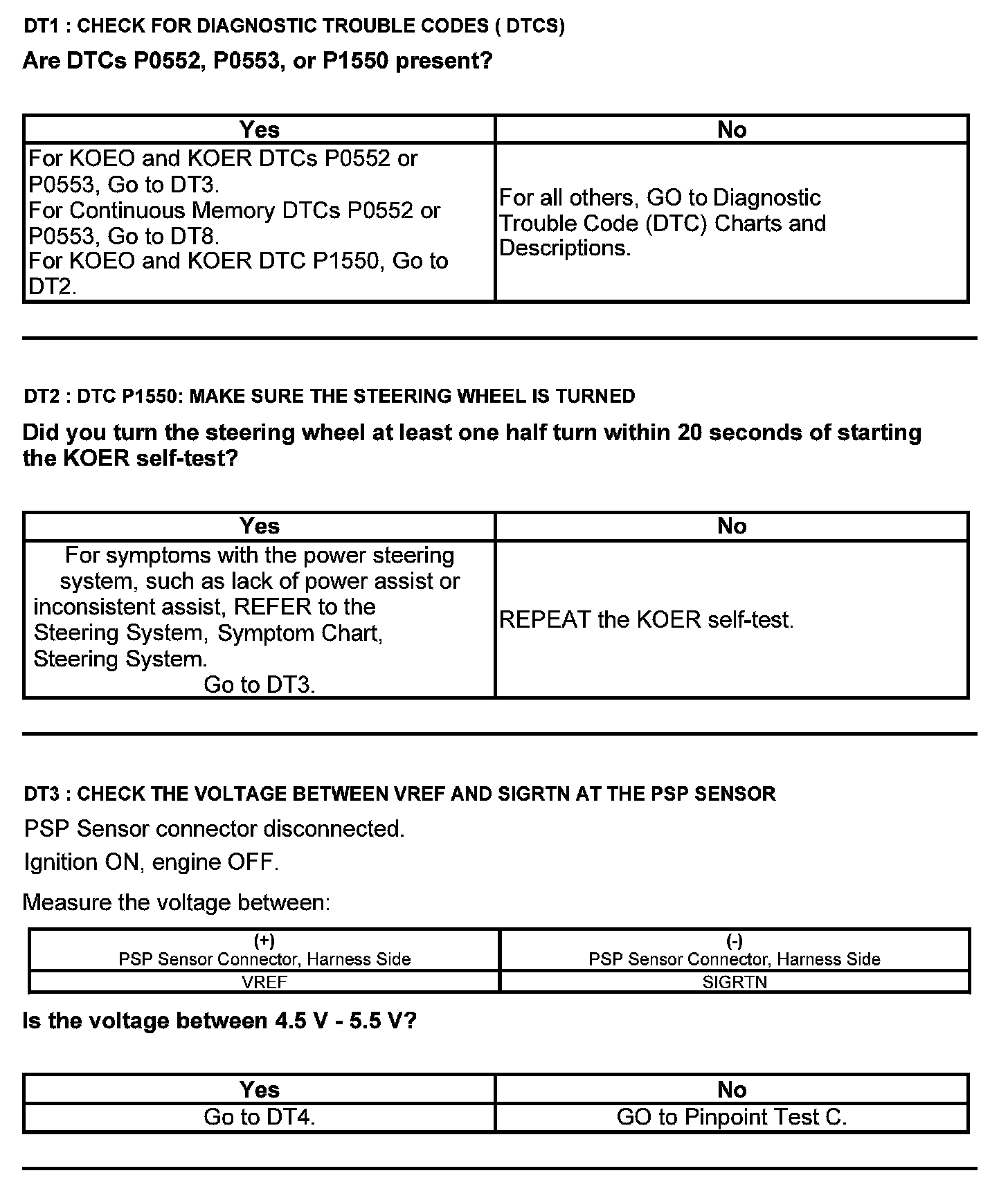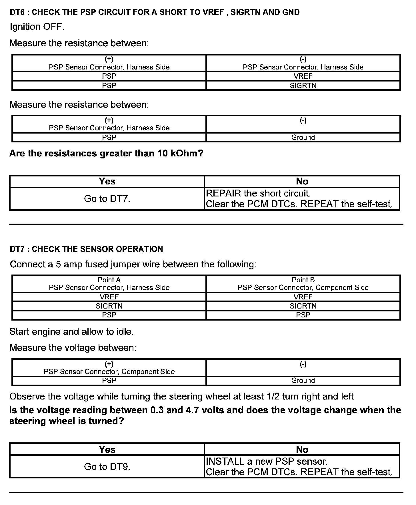 Test DT: Power Steering Pressure (PSP) Sensor