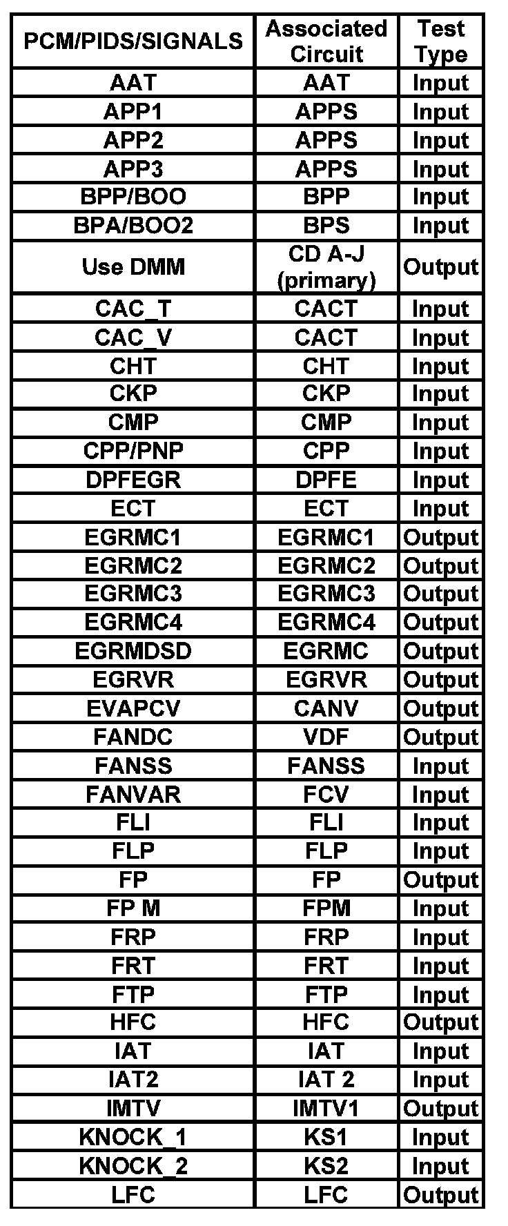 PCM PIDS/SIGNALS