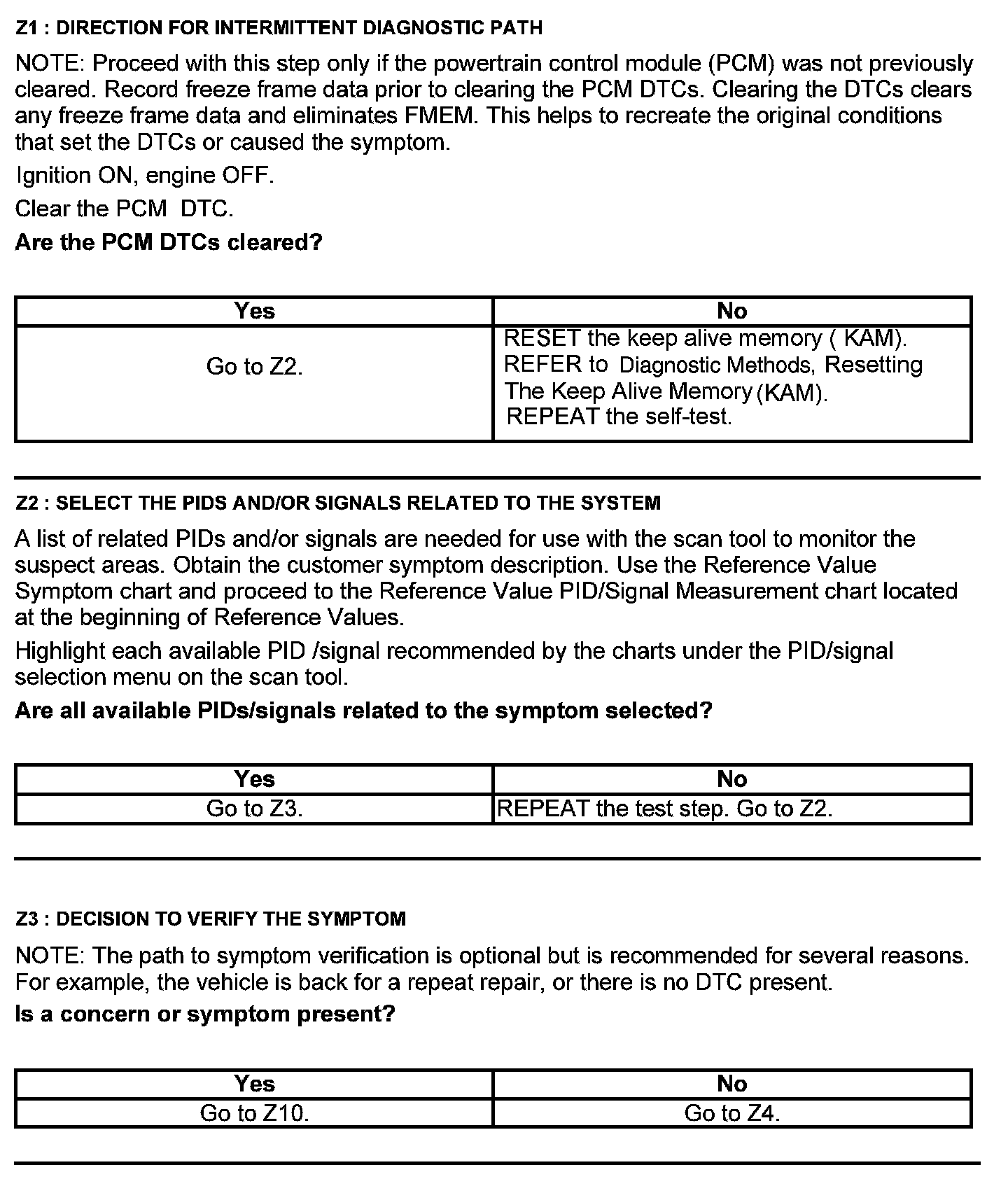 Test Z: Intermittent