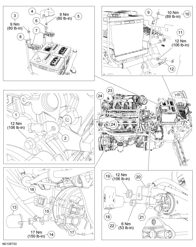 8. Remove the bolt and position the battery cable engine ground terminal aside.