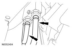 7. Remove and discard the 2 transmission fluid cooler tube bolts.