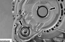 NOTICE: Make sure that the filter passage areas are clean of foreign material before installing the filter. Damage to the transaxle will occur if the filter passages are not clean.