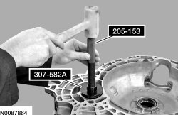 221. Using the Handle 205-153 and the Cover Axle Seal Installer 307-582A, install the halfshaft seal in the transaxle case.