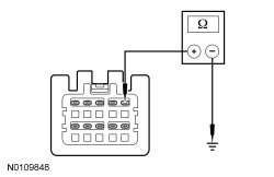 - Measure the resistance between selector lever harness C3245-5, circuit GD114 (BK/BU) and ground.