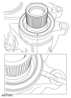 Remove the 5 PTU (Power Transfer Unit) bolts. Pull the PTU (Power Transfer Unit) outward and separate it from the transaxle. Rotate the output flange upward, then turn it and remove the PTU (Power Transfer Unit) from the vehicle.