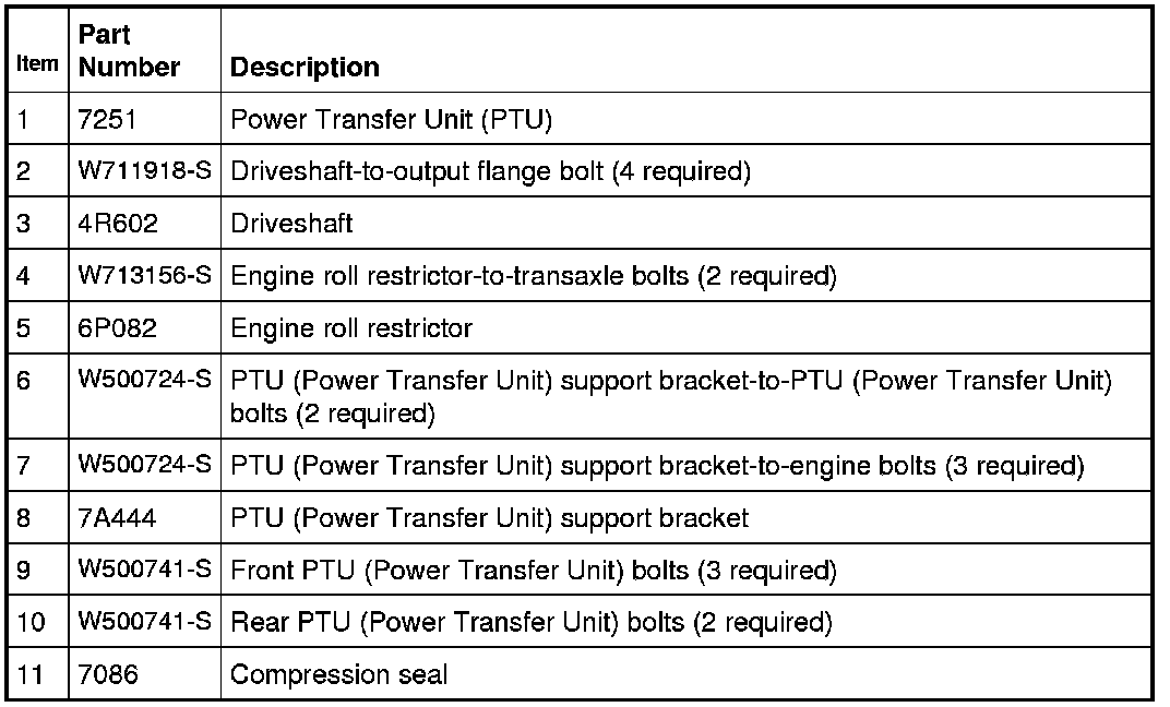 5. Remove the 5 Power Transfer Unit (PTU) support bracket bolts and the support bracket.