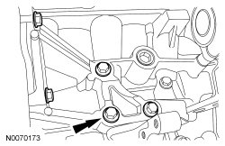1. Remove the 2 engine roll restrictor-to-transaxle bolts.