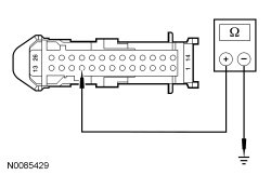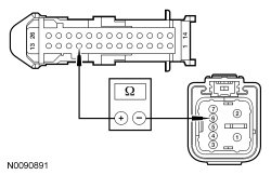 - Measure the resistance between SJB (Smart Junction Box) C2280C-10, circuit CPW01 (BN/BU), harness side and ground.