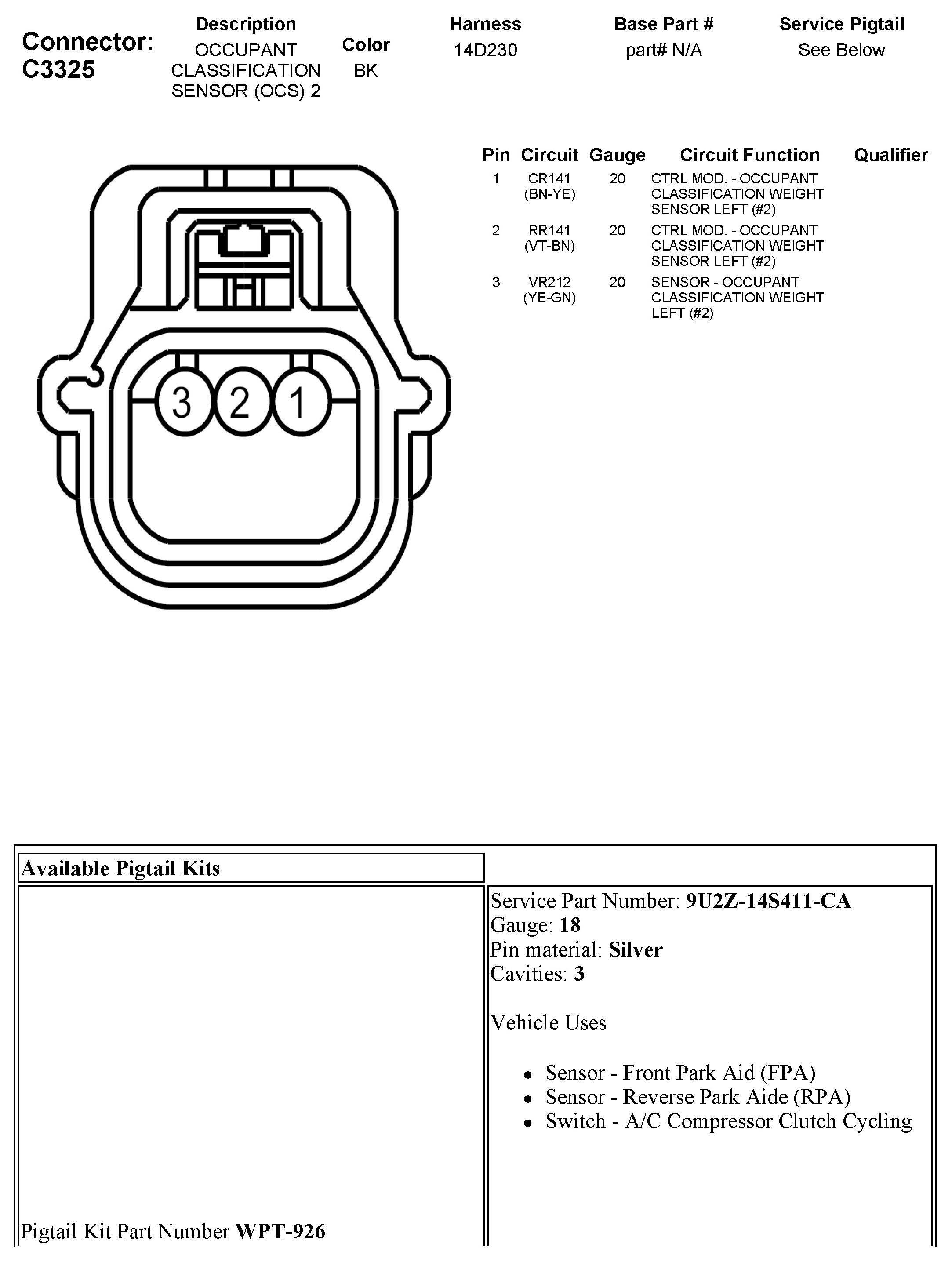C3325 Occupant Classification Sensor (OCS) 2