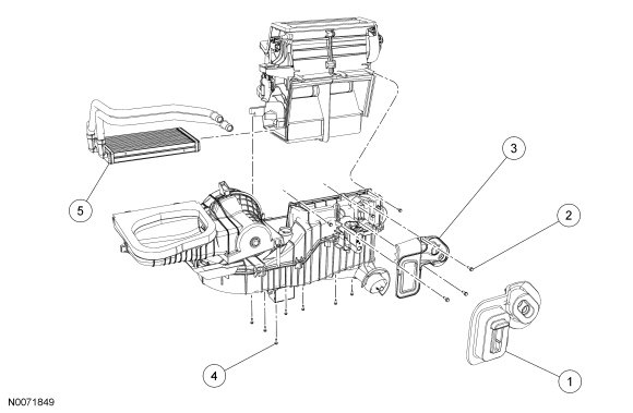 1. Remove the heater core and evaporator core housing. For additional information, refer to Heater Core And Evaporator Core Housing .