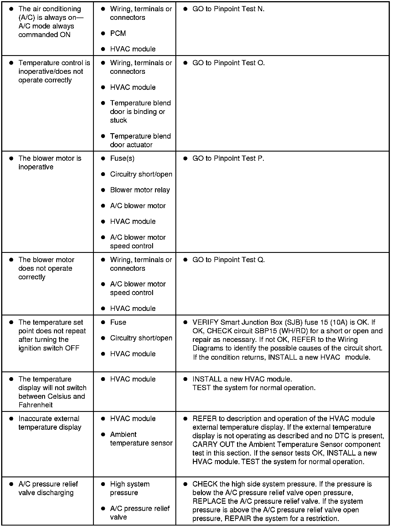 Symptom Chart - Climate Control Systems