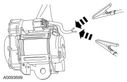 12. Deploy the safety belt buckle or retractor by touching the ends of the 2 wires of the jumper harness to the terminals of a 12-volt battery.