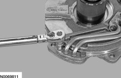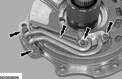 179. Tighten the 2 stator support feed tube Torx(R) head bolts.