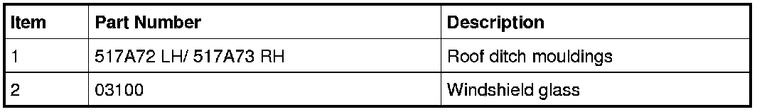 1. Position aside the front portion of the LH and RH roof ditch mouldings. For additional information about the roof ditch moulding clips and their location(s), refer to Roof Ditch Moulding in Auxiliary Step / Running Board.